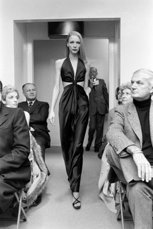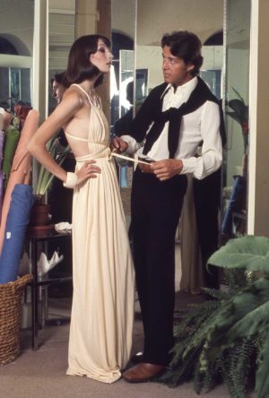 Una altra opció seria un sofisticat model amb coll hàlter, com els de l’era disco a la Nova York dels 70 del dissenyador de moda nordamericà Halston, d’actualitat per la sèrie que emet Netflix. A les imatges, les halstonettes Liza Minnelli, Karen Bjornson, Angelica Huston i Bianca Jagger.