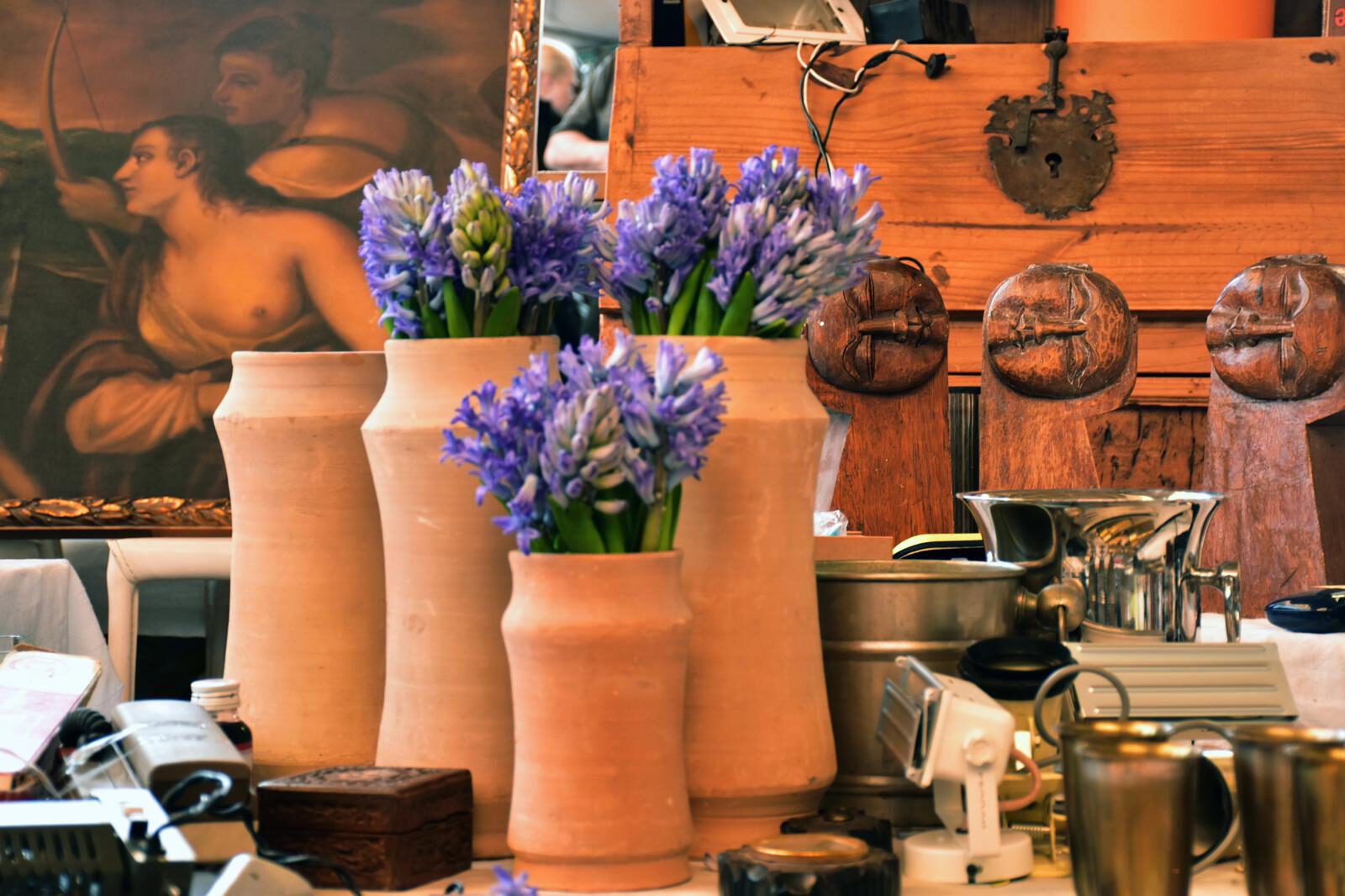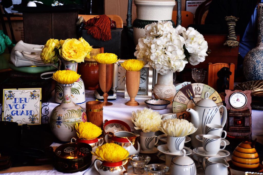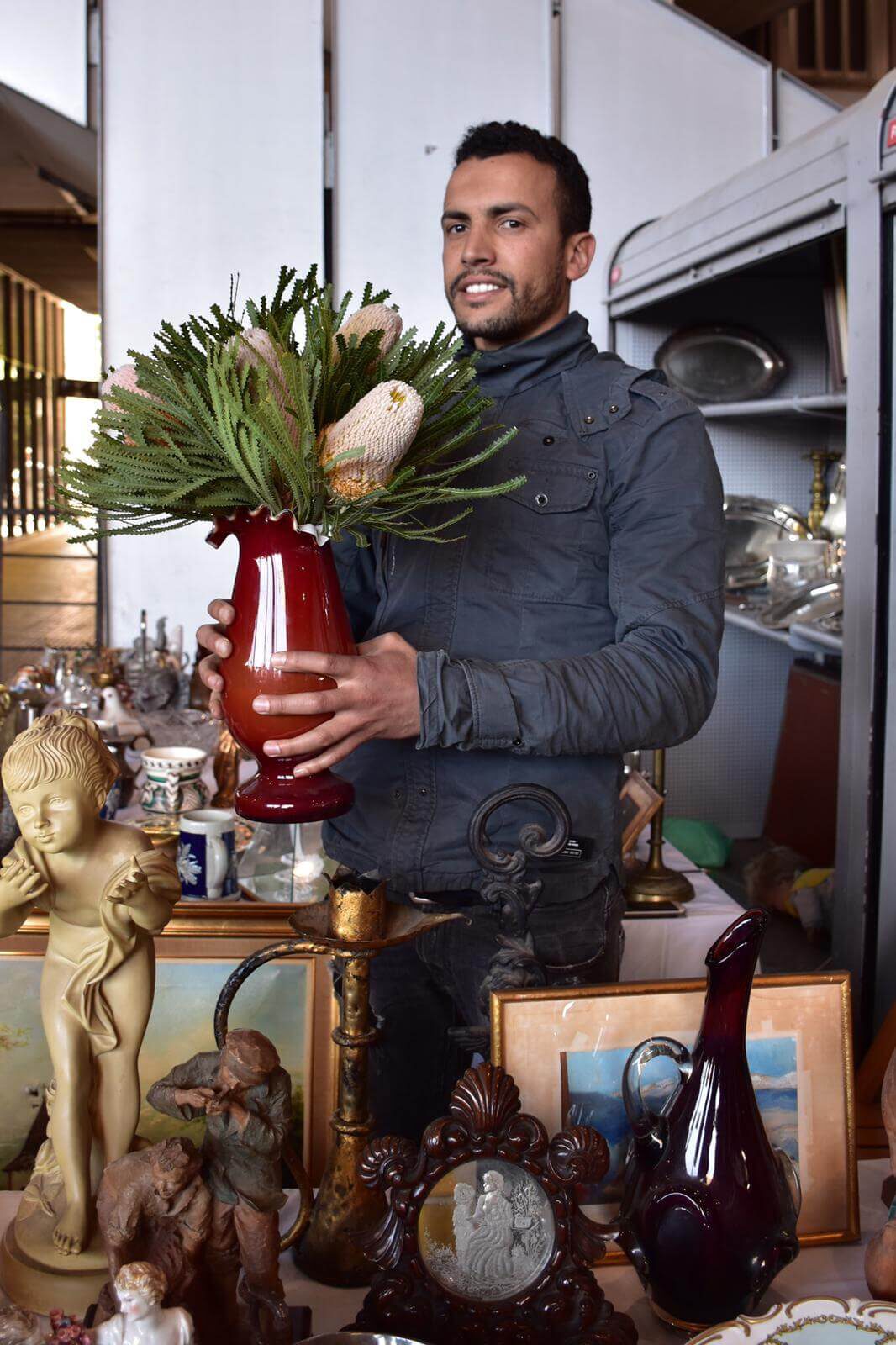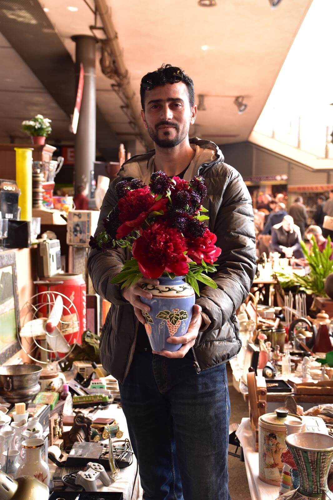 Fa uns mesos la dissenyadora floral Donna Stain es va proposar omplir de flors fresques els gerros buits del Mercat dels Encants. Una bonica manera de retornar la vida a aquests objectes que avui reposen al terra de la plaça de subhasta i que fa temps van omplir d’aroma i color les estàncies d’una llar. Gràcies Donna per la teva passió pel Mercat i pel teu ull sensible als tresors que l’habiten. Gràcies Nicasio Torres per inmortalitzar aquest moment.