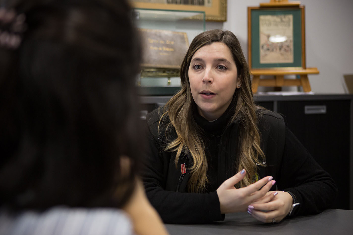 “Si mai busques informació sobre el Mercat dels Encants, és molt possible que acabis coneixent l’Estefania Bartolomé (Barcelona, 1989). Ella és l’encarregada de gestionar el punt d’informació del Mercat dels Encants. Respon a preguntes de clients, ciutadans i turistes que passen pel mercat. Atén trucades, respon correus. I, a més, és tercera generació d’una parada familiar al mateix mercat.”